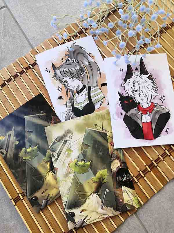Prints de arte original <3 En este caso Raquel, Howl y un paisaje de ciudad postapocalíptico.
